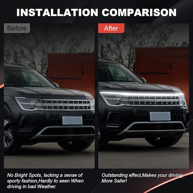 Fabricada con cuentas LED de alta calidad y materiales elásticos sin calefacción, esta tira se adapta perfectamente a cualquier forma dentro de tu carro o el capó. Flexible, brillante y elegante, aporta un estilo deportivo y futurista a tu auto sin alterar su diseño original.🚗